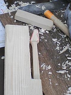 2日間削り続けたところ、ようやくギターっぽい形になってまいりました。